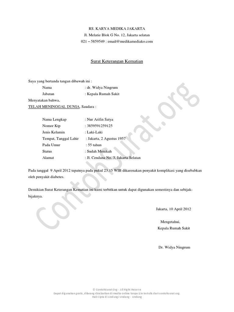 Contoh Surat Keterangan Kematian Dari Perusahaan Rt 017 Rw 05 Tanjung Duren Selatan Mengurus Pembuatan Contoh Proposal Kegiatan Penelitian Usaha Lengkap Dengan Cara Membuatnya Doc from lh3.googleusercontent.com 25 contoh surat izin tidak masuk kerja berbagai alasan contoh surat. Contoh surat keterangan kematian 1 adalah surat keterangan kematian yang diterbitkan oleh pihak rumah sakit untuk keluarga yang ditinggalkan. Home » surat keterangan » contoh surat keterangan magang dari perusahaan yang baik. Topik k3 lainnya yang bisa anda pelajari adalah contoh komunikasi vertikal, contoh buku laporan harian satpam. Isi surat kematian yaitu berisi tentang identitas, sebab kematian, waktu dan tempat kematian. Contoh surat pernyataan tidak memiliki hubungan keluarga contoh surat from contohsurat.co. Surat adalah sarana untuk menyampaikan informasi tertulis oleh satu pihak kepada pihak lain yang bertujuan untuk memberitahukan maksud pesan dari si pengirim ke si penerima. Untuk jasa pengiriman, pada umumnya, dibutuhkan prangko dan.